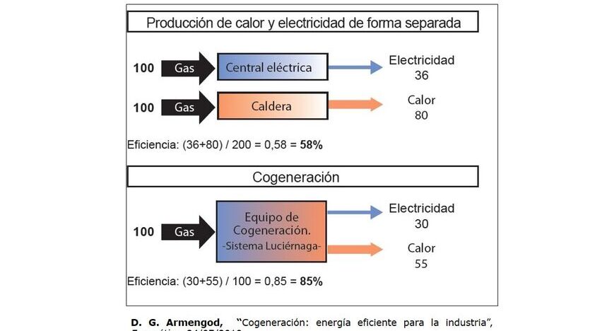 Es decir, hemos producido más energía térmica sin aumentar el consumo de energía primaria, que es lo que contamina por la emisión de CO2 a la atmósfera. Esto se consigue porque tenemos un sistema de cogeneración en el que producimos al mismo tiempo electricidad y calor. Cuando la demanda de calor (calefacción) es menor que la producción, o bien se deja de producir electricidad (perdiendo ingresos) o bien, el motor sigue produciendo electricidad (porque resulta rentable por su precio) pero el calor generado en exceso se disipa en la atmósfera, lo cual supone un despilfarro energético.